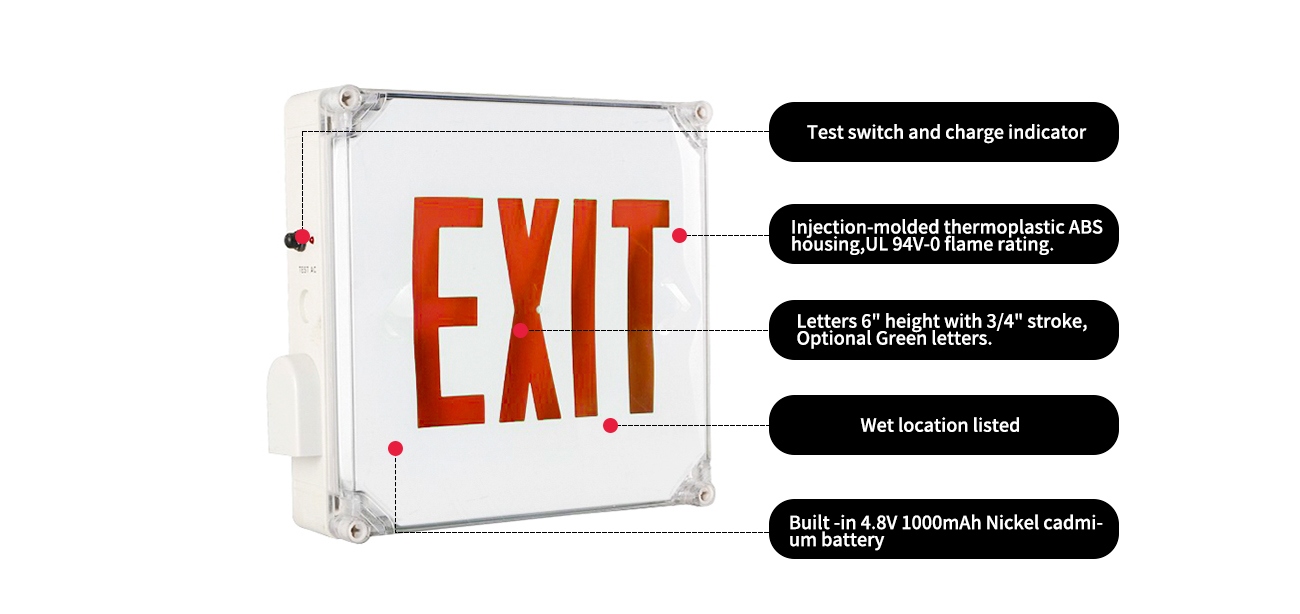 Hjem / Produkt / Afsluttegn / Afslut lys / Jeewpr-outdoor vandtæt rød LED-udgangslys