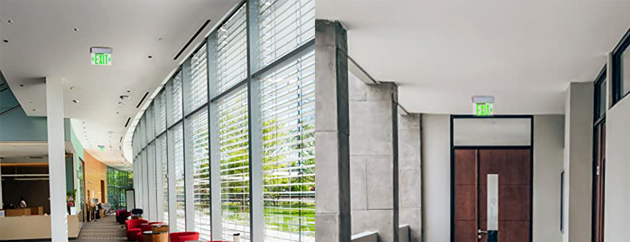 *Illumination - Denne kant Lit Exit Sign Series giver en lang levetid LED -belysning. Enheden er konstrueret med et grønt LED -kort med høj output.  Energiforbruget er klassificeret til mindre end 3,5 watt for AC -kun -modelenhederne. Batteri -sikkerhedskopieringsenheder Energiforbrug er klassificeret til mindre end 1 watt.