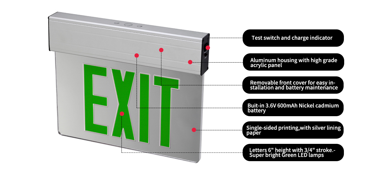 Enkelt ansigt 6 tommer 12 LED nødudgangsskilt