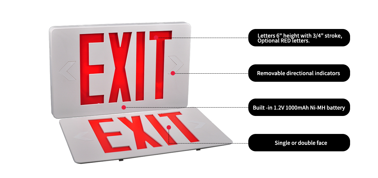 *Konstruktion - LED -udgangsskiltet er konstrueret af injektionsstøbt, V -0 -flammehæmmende, termoplastisk hus med høj påvirkning. Hvide boliger er standard.