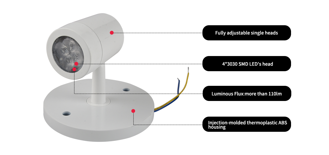 Hjem / Produkt / Nødlys / LED Emergency Light Remote Head / CNDRH1 -4*3030 SMD indendørs enkelt fjernlampehoved